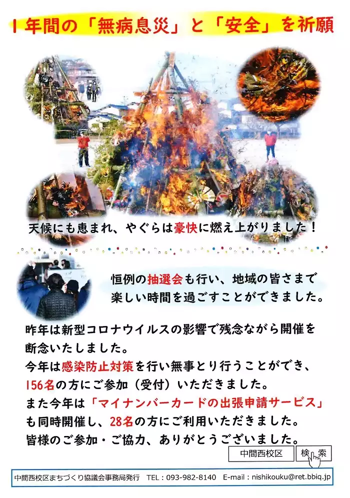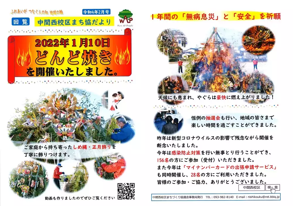 中間西校区まち協だより 中間西校区まちづくり協議会では、校区各自治会を通じて回覧していただく「中間西校区まち協だより」を発行しています。 個別に入手希望の方は、西校区まちづくり協議会までお知らせください。(093-982-8140) 令和4年2月号紹介 画像クリックで拡大画像を表示
